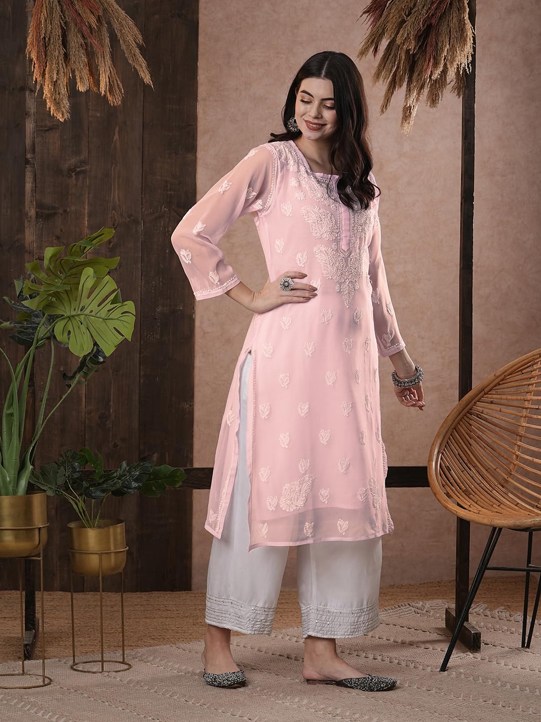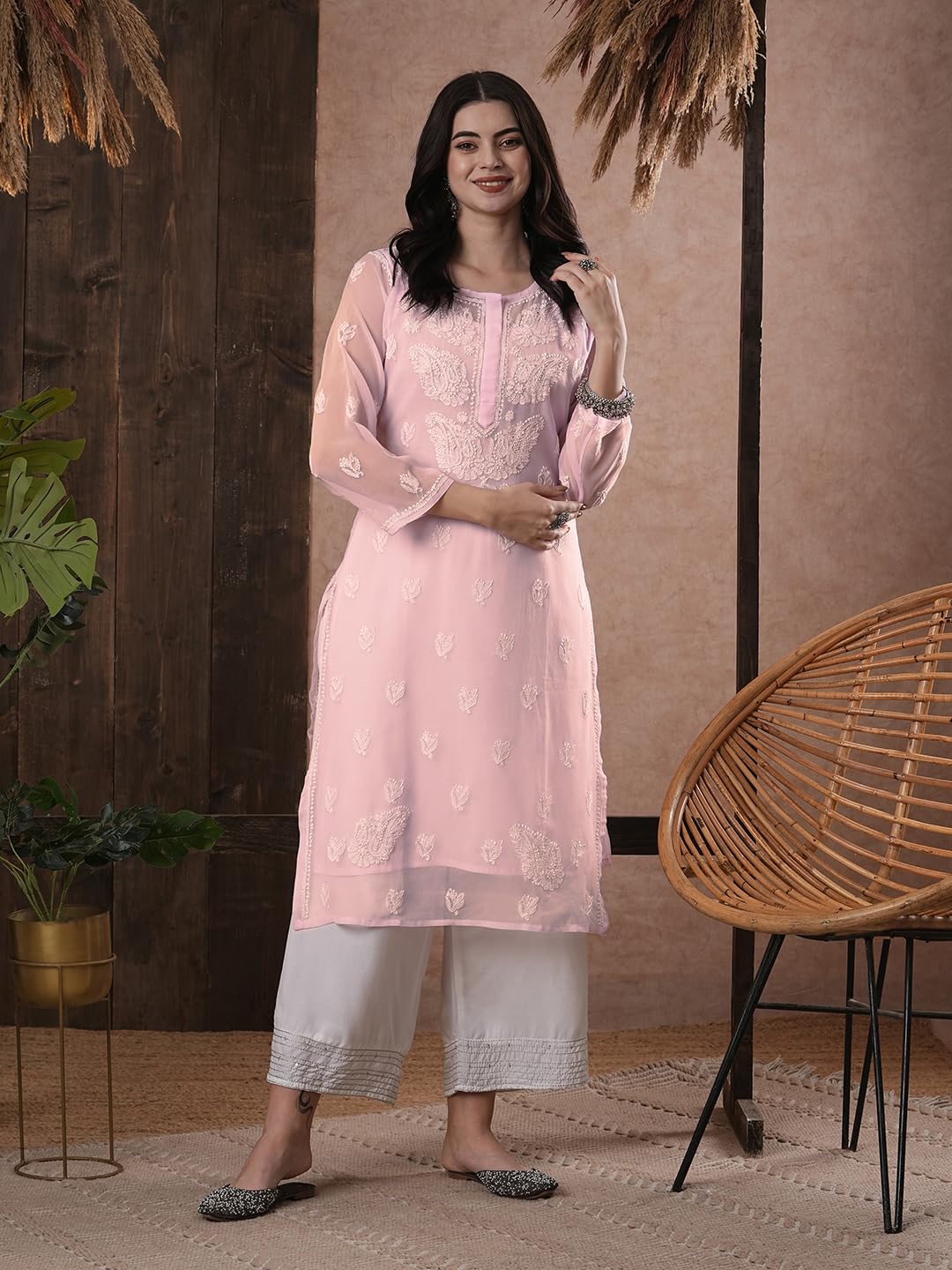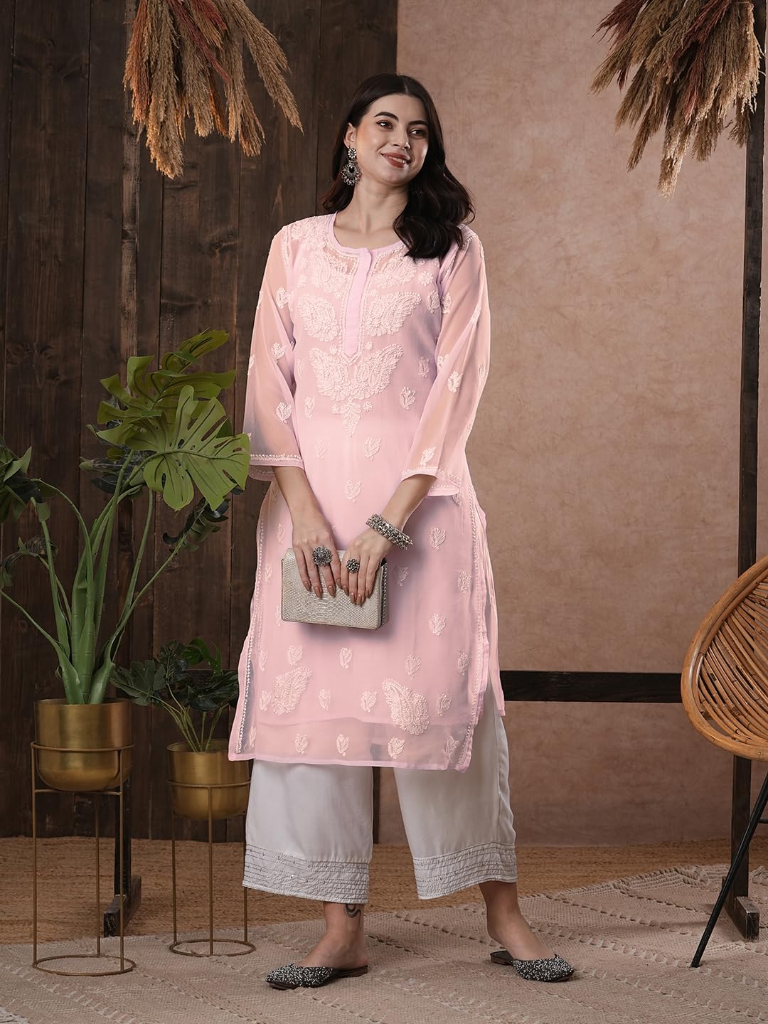 Faux Georgette chikan kurtis oozes simplistic tradition and what's the best part? Chikan kurtis can be flaunted in any rituals or outings & on all occasions with elegance.