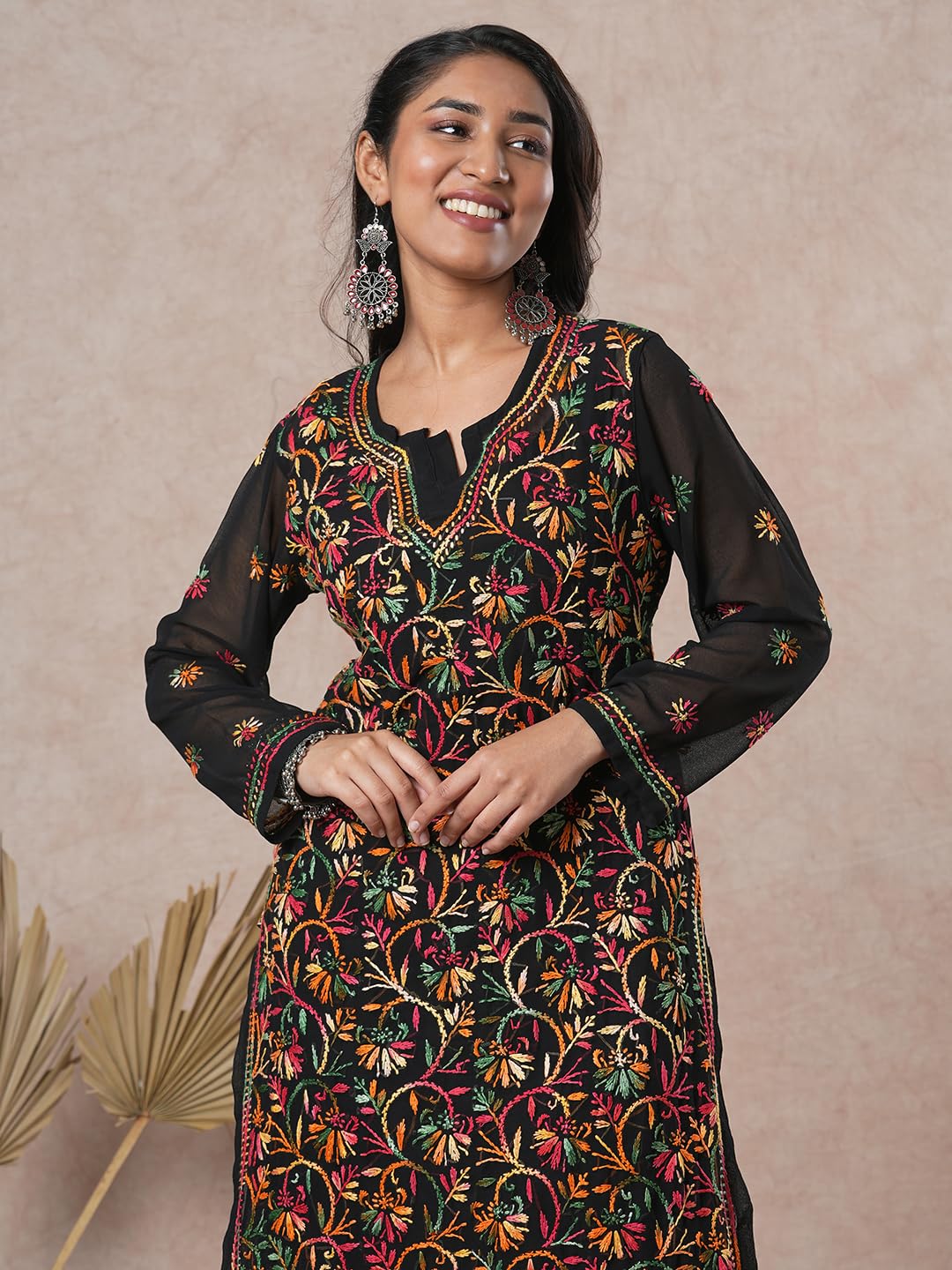 At Ada, we take pride in our needle craft, which is GI mapped and recognized internationally. Our products undergo multiple washes to ensure they are free of color bleeding and shrinkage, giving you a high-quality garment that will last for years to come. Embrace the beauty of handcrafted fashion with our Faux Georgette kurti and make a statement wherever you go.
