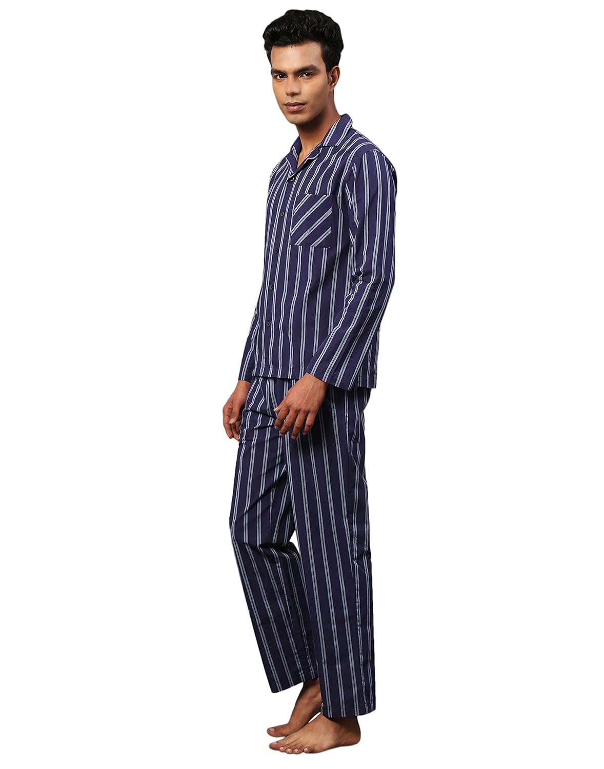 The notched collar, full cotton placket, and front pocket are meticulously crafted to give you a classy look even when you're just lounging at home. The side pockets on the pants add functionality without sacrificing style.