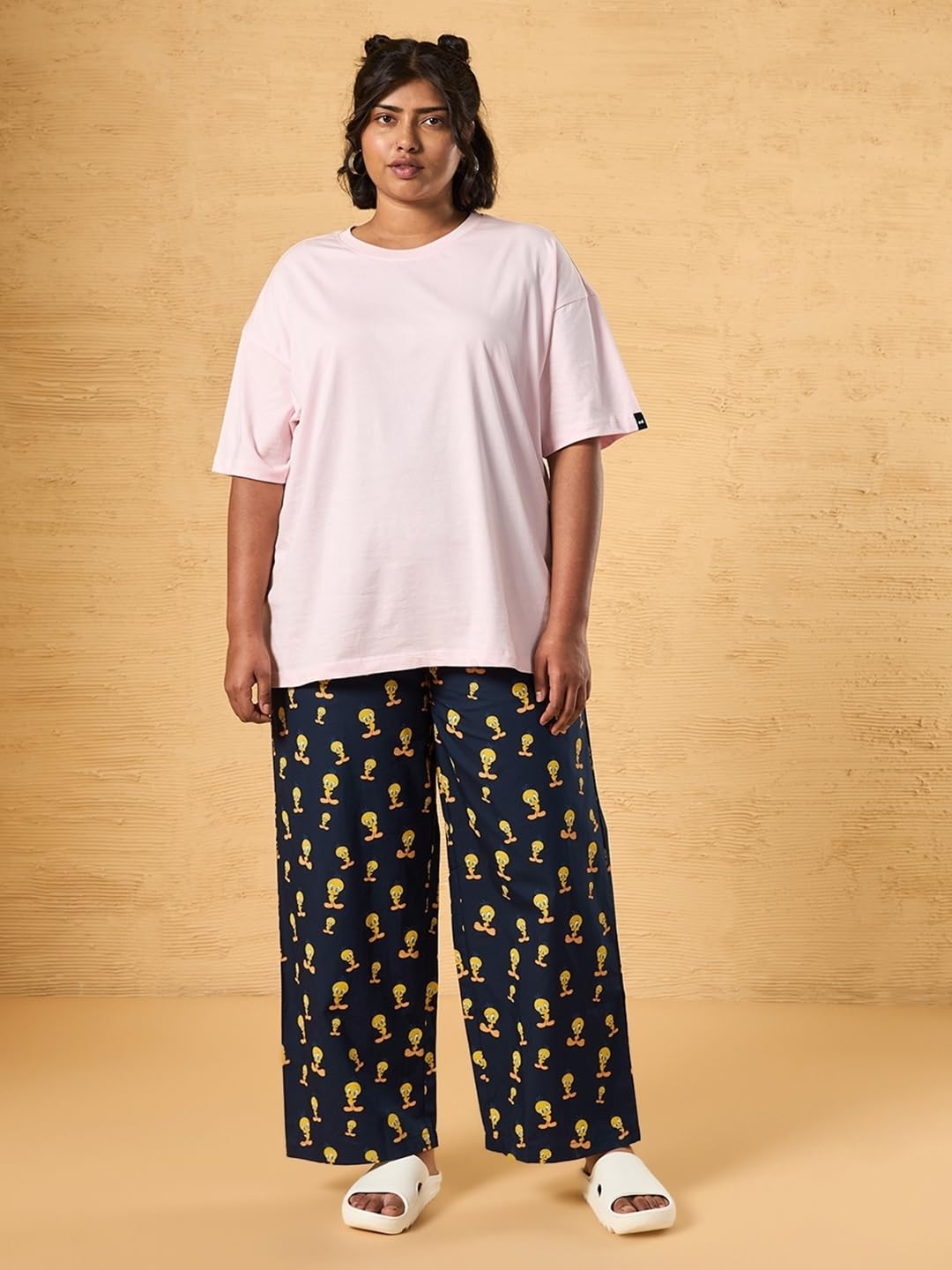 I absolutely adore these pyjamas! The blue all-over print is vibrant and cheerful, making me look forward to putting them on every night. The oversized plus size fit is incredibly comfortable and flattering—it doesn’t cling anywhere and offers plenty of room to move around freely. The fabric feels soft and breathable, perfect for cozy evenings or even lazy weekends. I especially love pairing them with a simple tee and my favorite fluffy socks for the ultimate chill vibe. The quality from Bewakoof is evident in the stitching and overall design. These pyjamas have become my everyday favorite, whether I’m lounging at home or retiring for a good night's sleep. If you're looking for something stylish yet super comfy, these pyjamas are a fantastic choice!