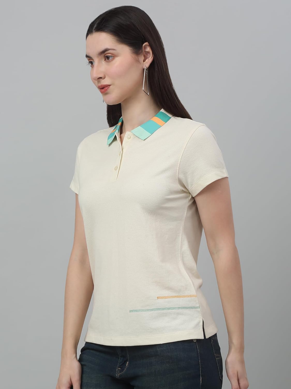 One of our standout products is the Cantabil Women Poly Cotton Polo Neck Half Sleeve Solid Beige T-Shirt. This regular fit t-shirt features a classic polo neck and half sleeves, making it the perfect choice for casual occasions. Made from high-quality poly cotton, this t-shirt offers all-day comfort and exceptional breathability, allowing you to stay stylish and comfortable all day long.