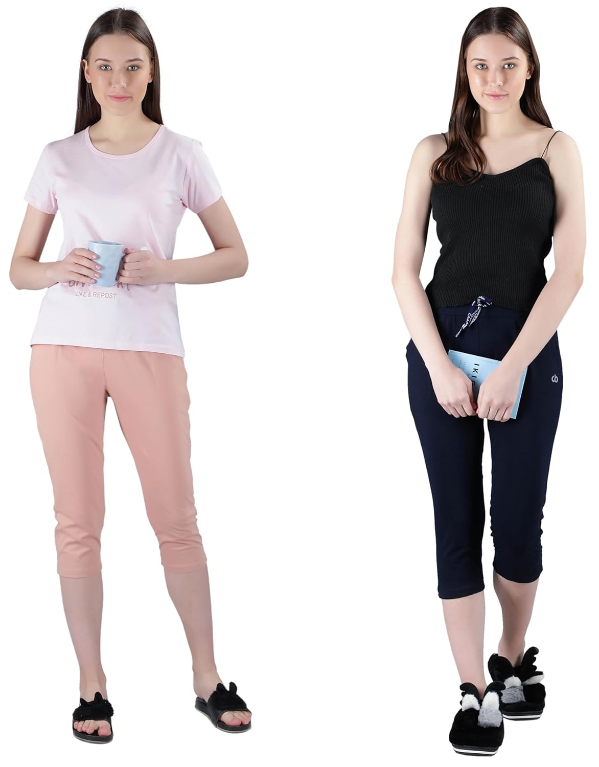 Lightweight. Super soft. Comfortable. Your sweats rotation isn’t complete without Club A9 Capri Pyjamas Crafted from a 100 % Combed cotton fabric that is smooth on the outside and brushed for softness on the inside, these versatile capri pyjamas take stylish comfort to the next level. Warm enough for the winter, they are lightweight enough for summertime wear too; pairing well with your favorite sandals or sneakers.These women’s capri are designed to hit at mid-calf and boast convenient side-seam pockets to stow your gear. Customize the fit with a drawstring at the waist.