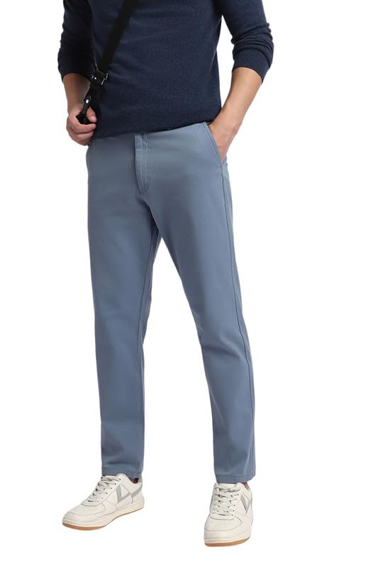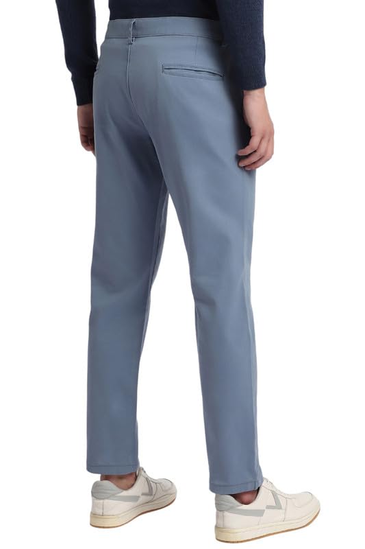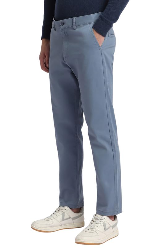 Dennis Lingo Men's Solid Cotton Lycra Slim Fit Mid Rise Casual Trousers (Steel Blue, 36)