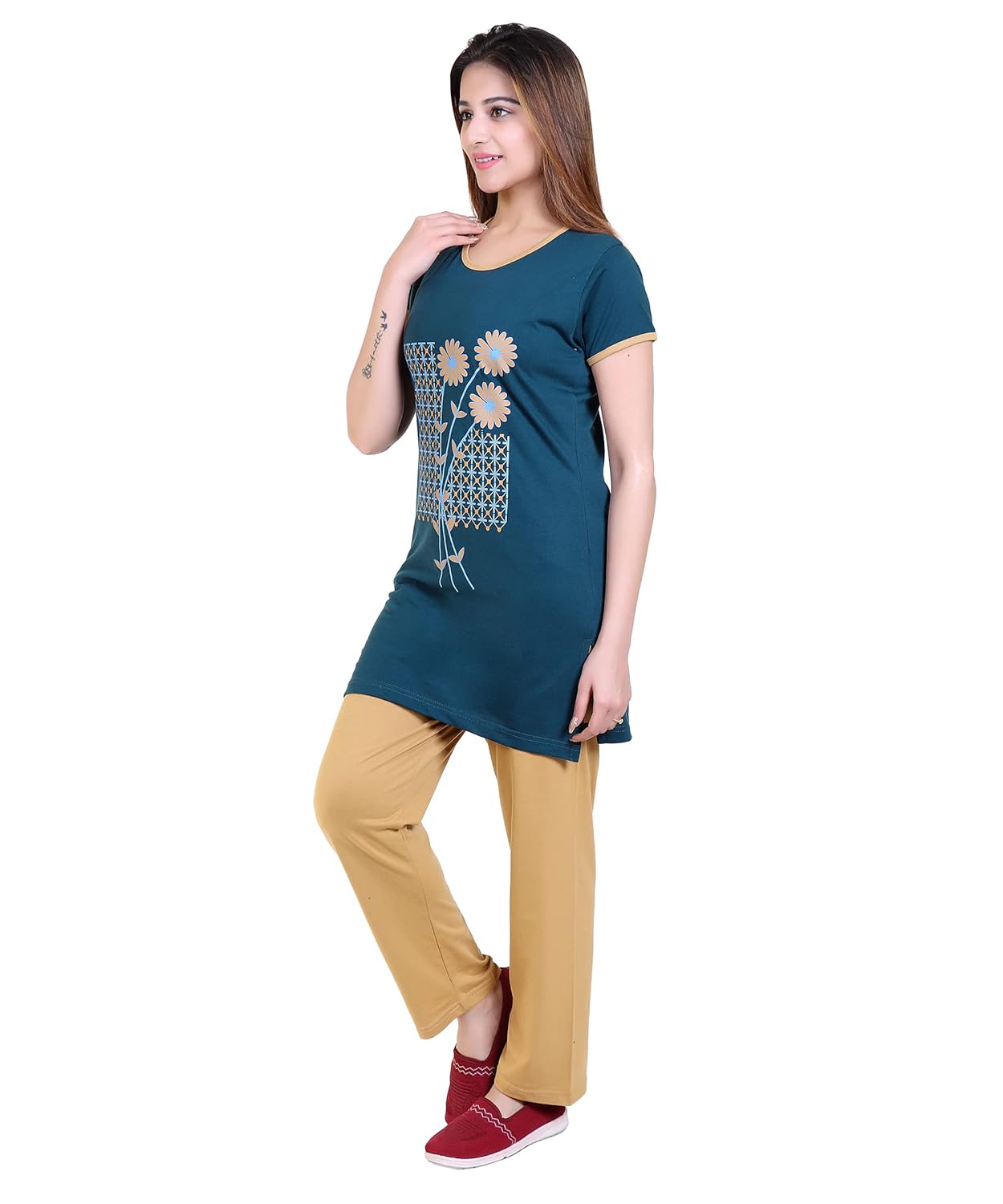 Stay cool, comfortable, and effortlessly stylish with the DG Divine Girl Printed Summer Night Suit Set – your ideal choice for relaxing at home or enjoying a restful night’s sleep. Designed for women who value both fashion and comfort, this 2-piece nightwear set combines breathable fabric with trendy prints to deliver the ultimate summer loungewear experience. Whether you're winding down after a long day or enjoying a weekend morning, this nightdress-inspired pyjama set offers a flattering fit, soft feel, and relaxed look that’s perfect for daily wear.