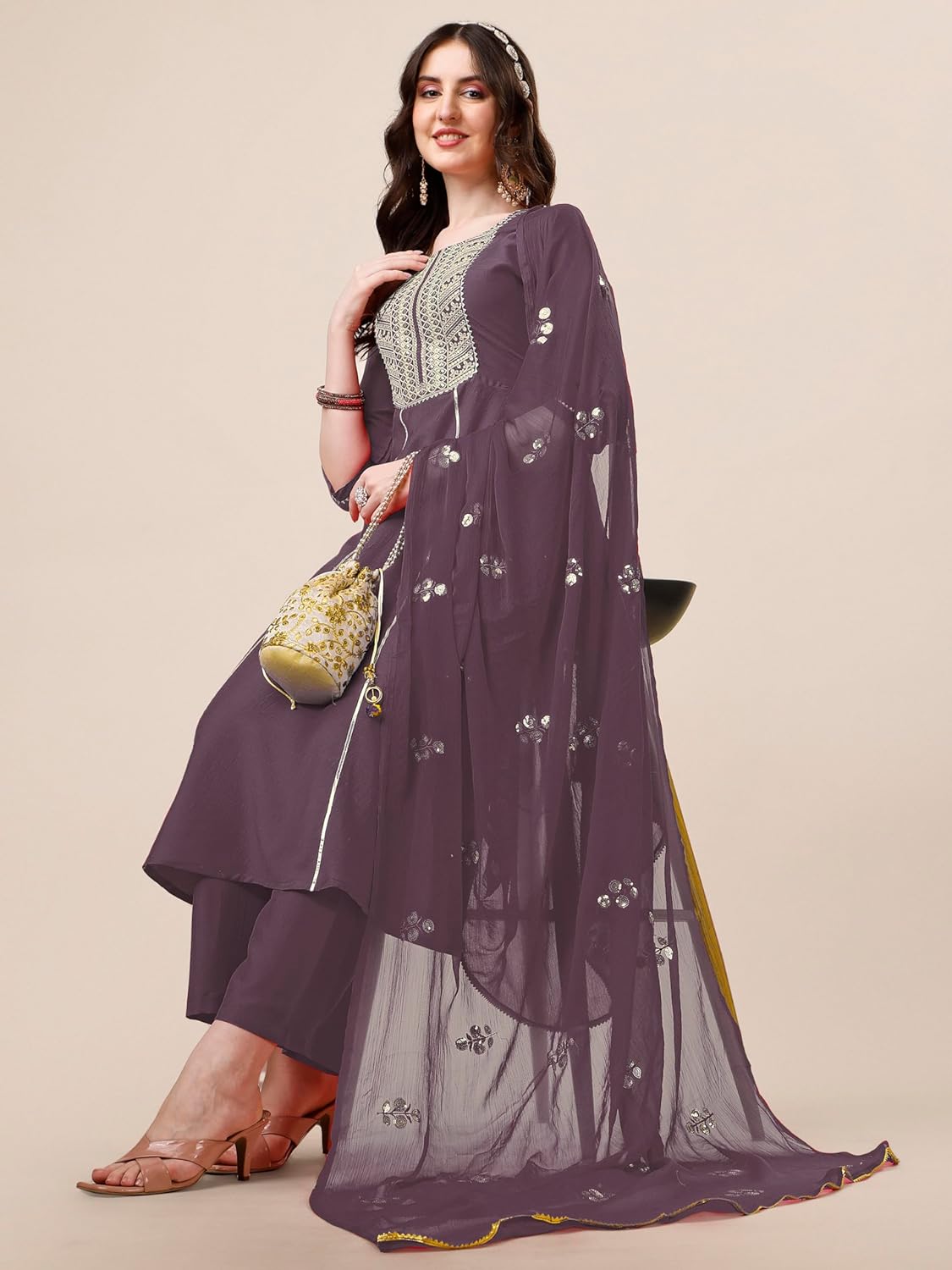 This A-Line Kurta Palazzo & Dupatta Set can be classified and can also be worn with pants or jeans. Crafted in soft Cotton blend with fabric,the pretty colour of this kurti will surely elevate your daily style. Kurti Fabric : Silk Blend, Style: Striaght Style Embroidered Sequence kurta Pant With Embroidered Sequence Dupatta, Sleeve Length: 3/4 Sleeves, Kurta Length : 41 inches approx.Wash Care Instructions - Dry Clean