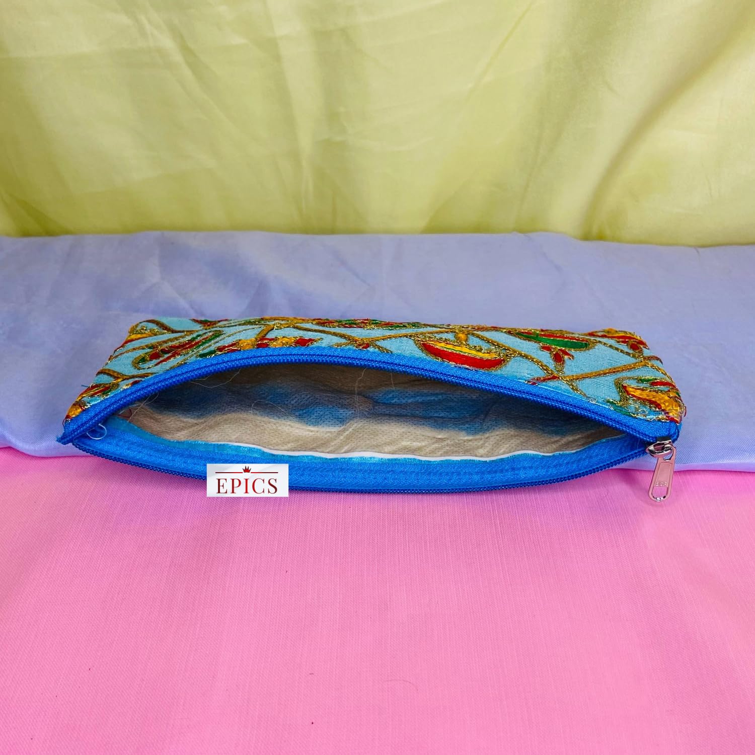 Measuring at 14 x 0.5 x 26 cm and weighing just 200 g, this bag is compact yet spacious enough to hold all your essentials. From makeup to keys to your phone, there's plenty of room for everything you need. The beautiful design and high-quality materials make this Potli bag a must-have for your collection.
