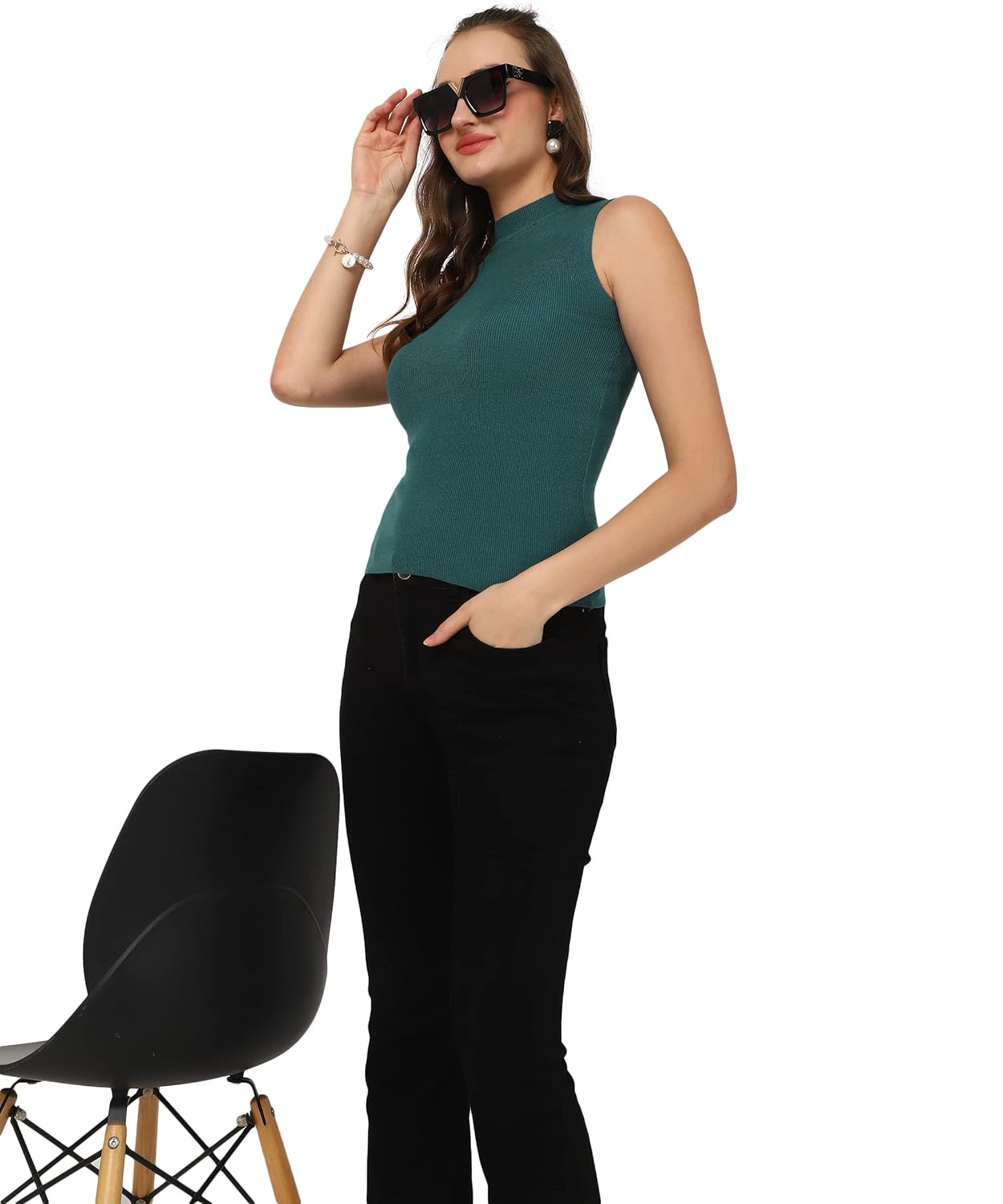 Sleeveless, Mock Neck, Ribbed Turtleneck, Bodycon Slim Fitting, Casual Pull-On Closure.