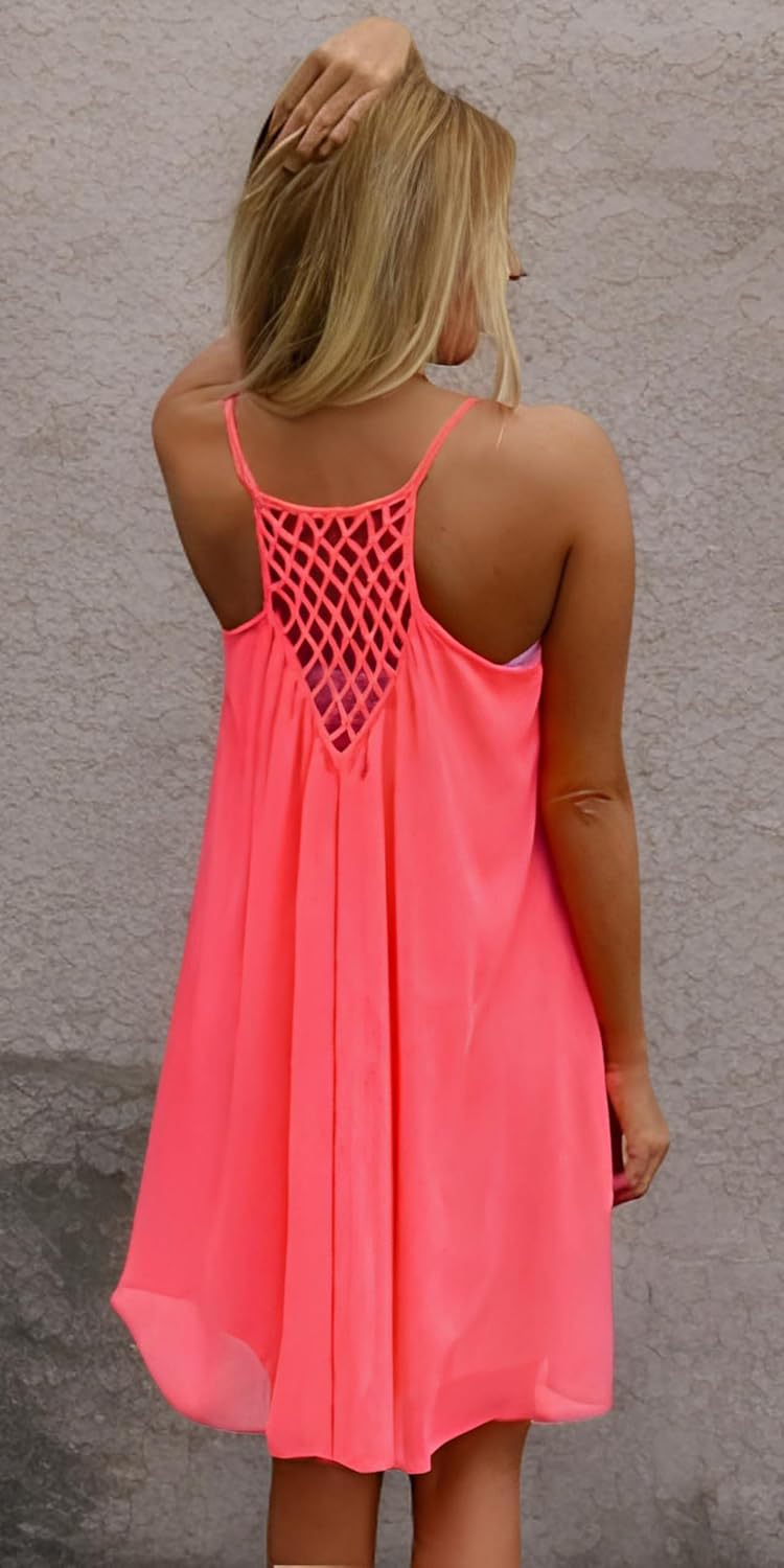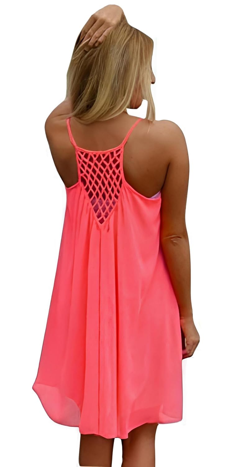 Imagine stepping out on a sunny day, wearing this lightweight, sleeveless tank dress that moves with you. The breathable chiffon fabric keeps you cool, while its elegant silhouette elevates your casual beach look. Whether you're heading to a pool party, a casual lunch, or even a special occasion, this sundress adapts flawlessly. The eye-catching mesh detail at the center back adds a tease of allure, making it perfect for turning heads at any event — from Halloween costumes to daily wear.