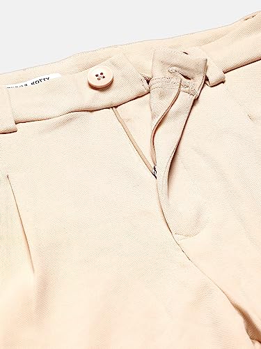 Pamper yourself with a stylish comfort in this cool pair of light green pleated pants from the latest collection of Kotty. Well crafted in premium cotton blend for unmatched drape complemented by fine softness and a smooth touch for ease of wear, these are tailored in a stylishly designed straight fit, side pocket with a high-rise silhouette to compliment your contours. Pair them with a contrast top for an alluring combination.Kindly ensure the size chart before buying.
