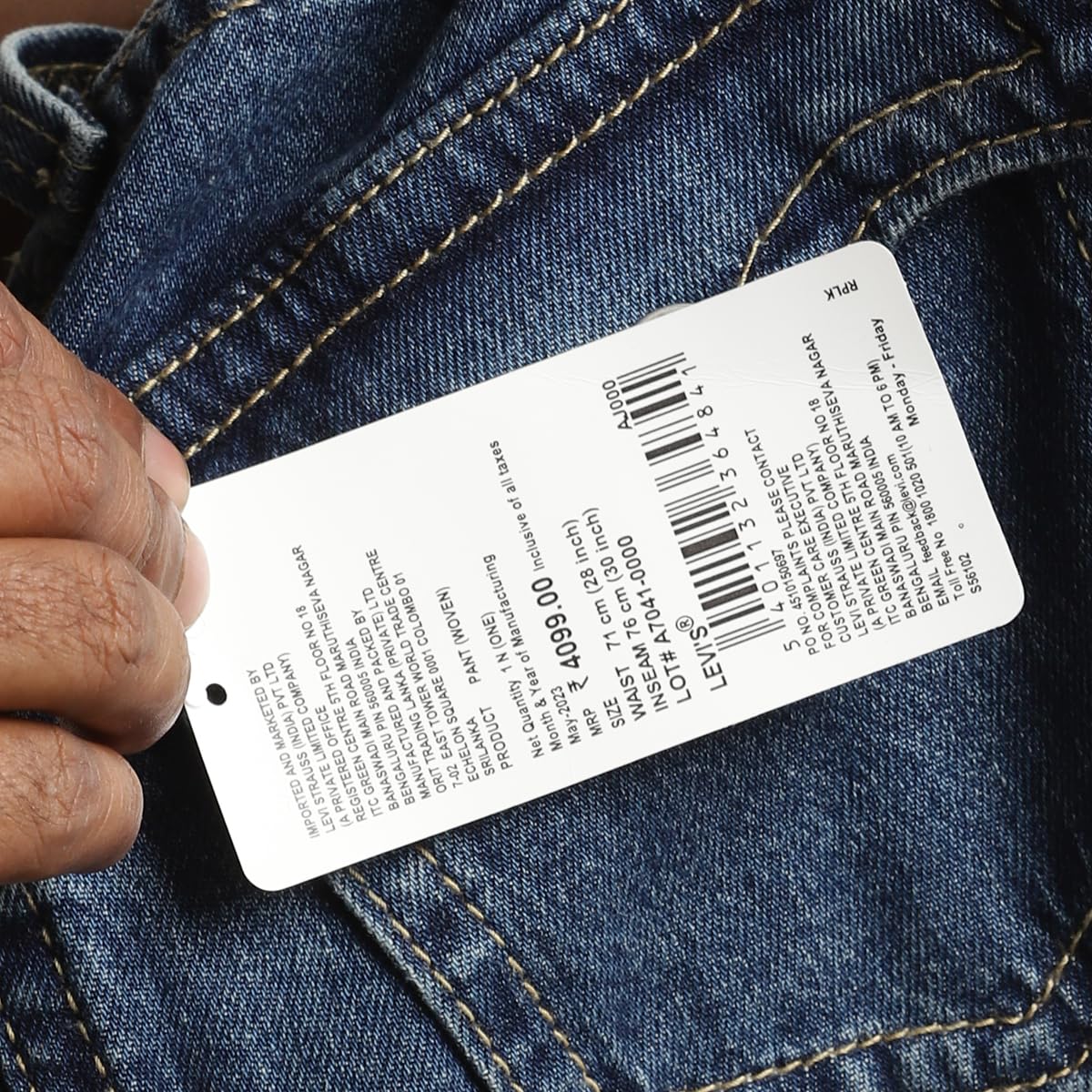 Importer : Levis Strauss (India) Pvt. Ltd. ITC Green Centre, 5th Floor - North Tower No 18, Banaswadi Main Road, Maruthi Seva Nagar, Bangalore - 560005
