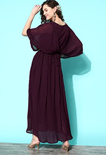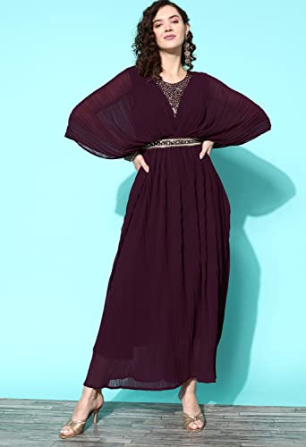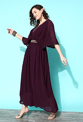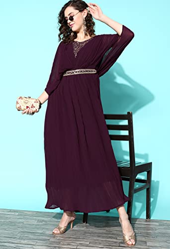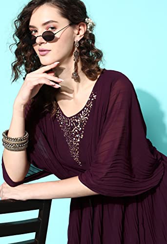 Introducing our stunning Georgette Indo Western Ethnic Dress with intricate stone work detailing! Made from the highest quality Georgette fabric and lined with a soft Silk Blend inner fabric, this dress is perfect for any special occasion. The half-length butterfly sleeves and round neck add a touch of elegance, while the flared A-Line silhouette is flattering on all body types.