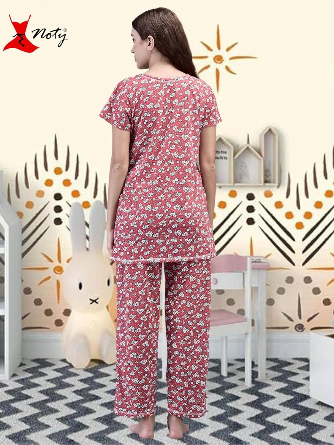 Don't miss out on the opportunity to treat yourself to a night of calm and relaxation with this coordinating set. Add this stunning night suit to your cart now and indulge in the perfect blend of comfort and style every night!