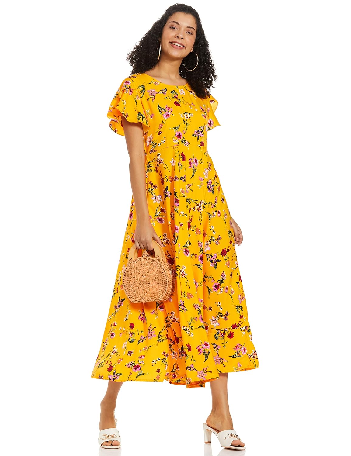 The dress features a flattering boat neck and elegant butterfly sleeves, making it the perfect choice for women who want to stand out from the crowd. The floral fabric adds a touch of whimsy to the outfit, while the relaxed fit ensures that you stay comfortable all day long.