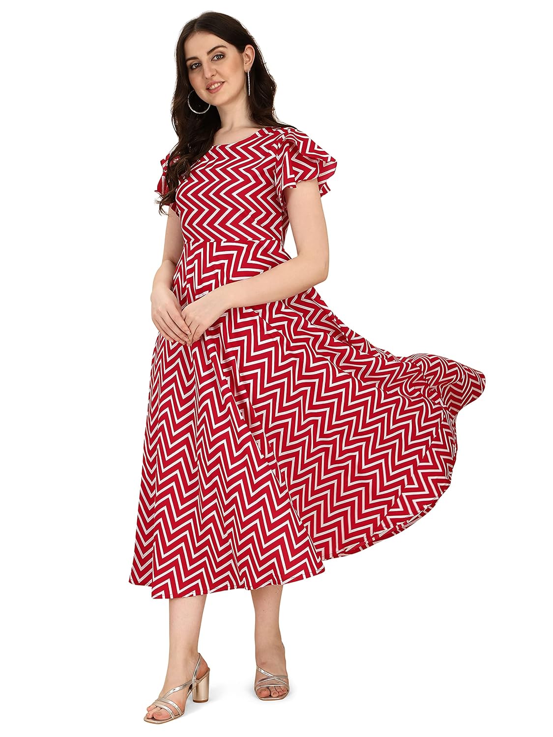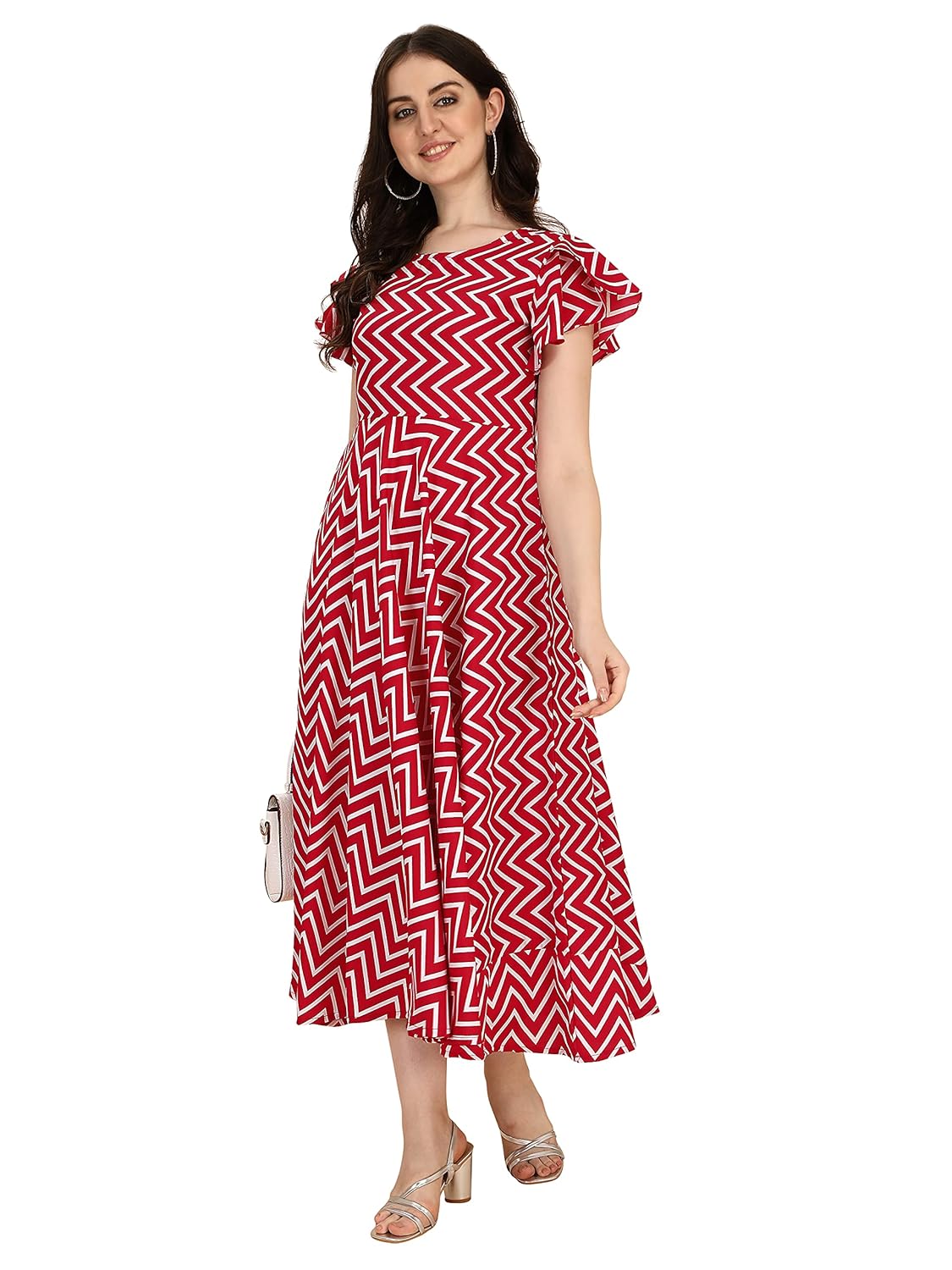 Indulge in the beauty and elegance of our ankle-length A-line dress, featuring butterfly sleeves and a flattering boat neck. The floral printed fabric exudes charm and sophistication, perfect for both casual outings and playful parties. The relaxed fit of the garment ensures comfort without compromising on style.