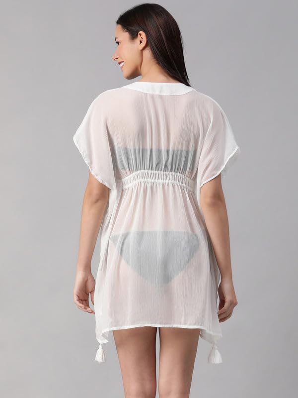 What truly makes this beachwear a must-have is the elasticated waist. Designed for a flattering fit, it cinches gently where it matters most, accentuating your natural curves while providing freedom of movement. Whether you’re strolling along the shore or enjoying a beachside party, it’s a dress that moves with you gracefully, ensuring you look polished without ever compromising on comfort.