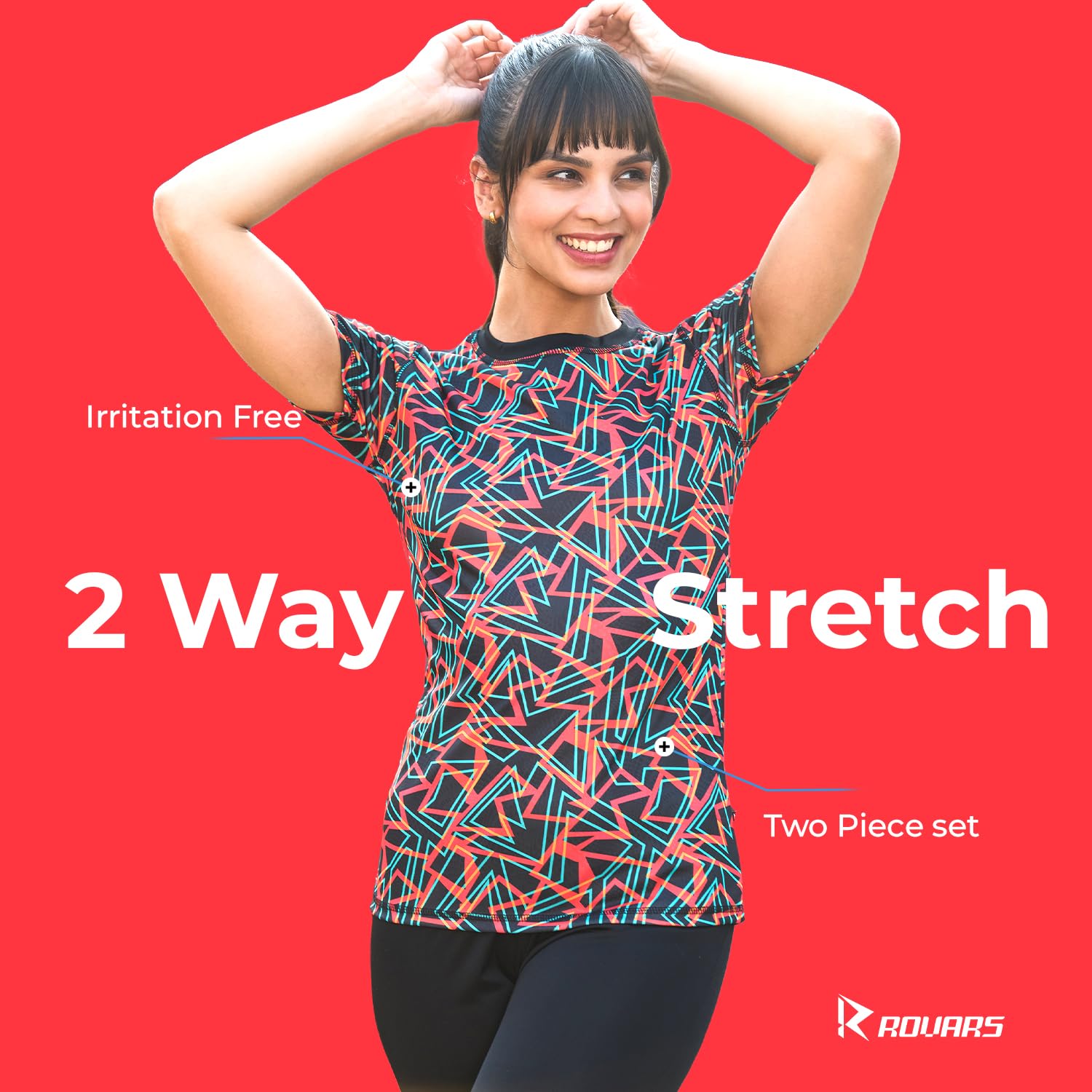ROVARS Women's Two-Piece Swimwear Set – Printed Poly Jersey Swim Top & Plain Leggings
