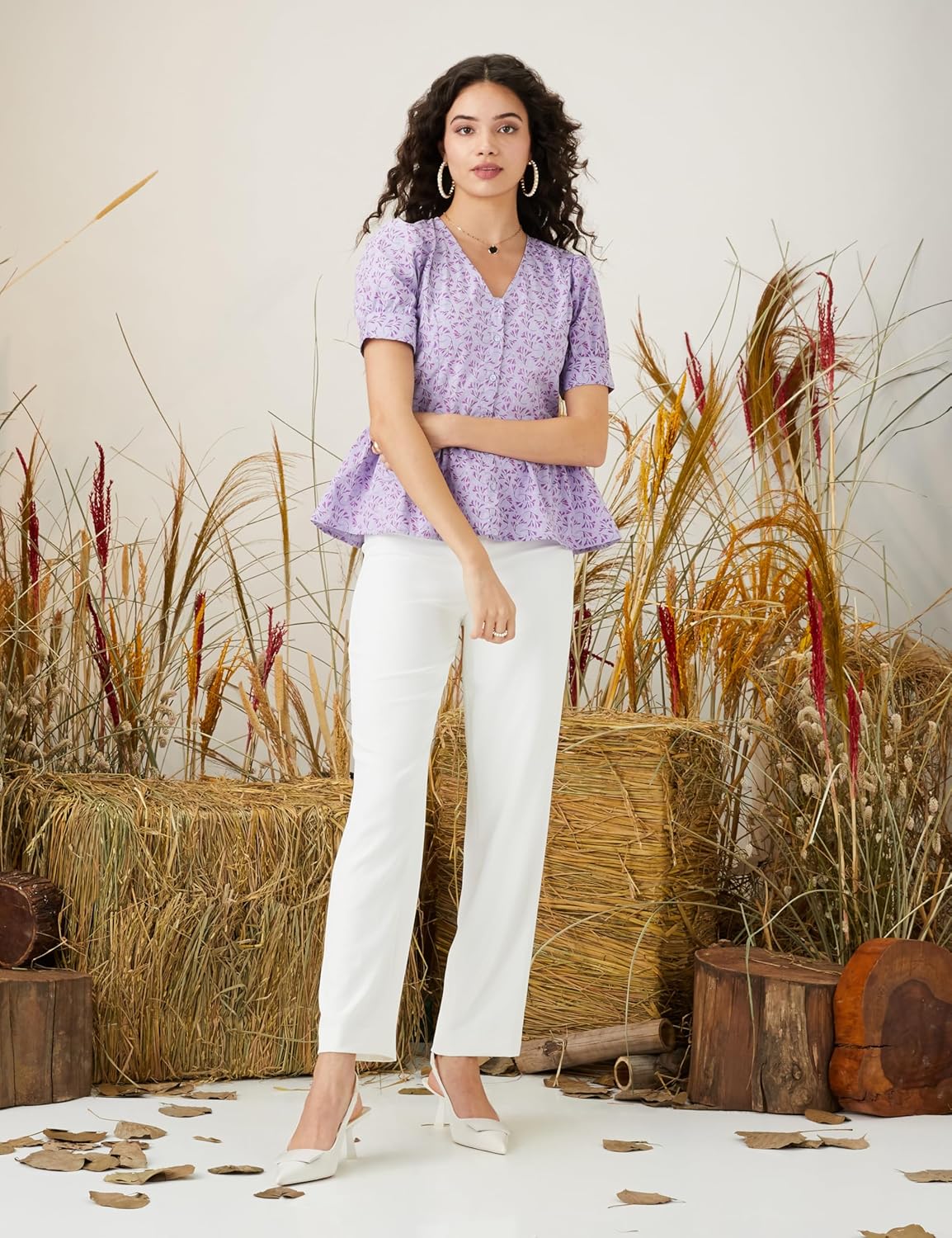 Experience irresistible value with our great prices, making it easy to refresh your wardrobe without breaking the bank. Elevate your everyday look with the Cotton V-Neck Puff Sleeve Regular Fit Peplum Top and embrace your unique style effortlessly.