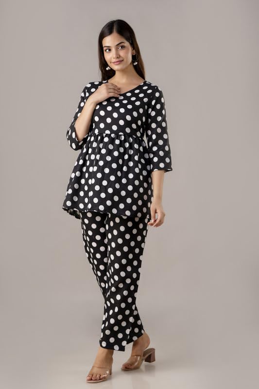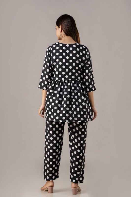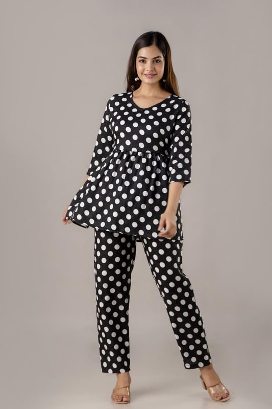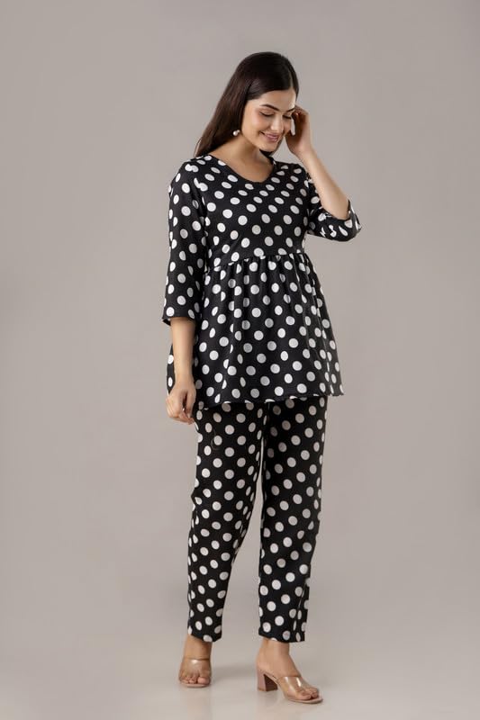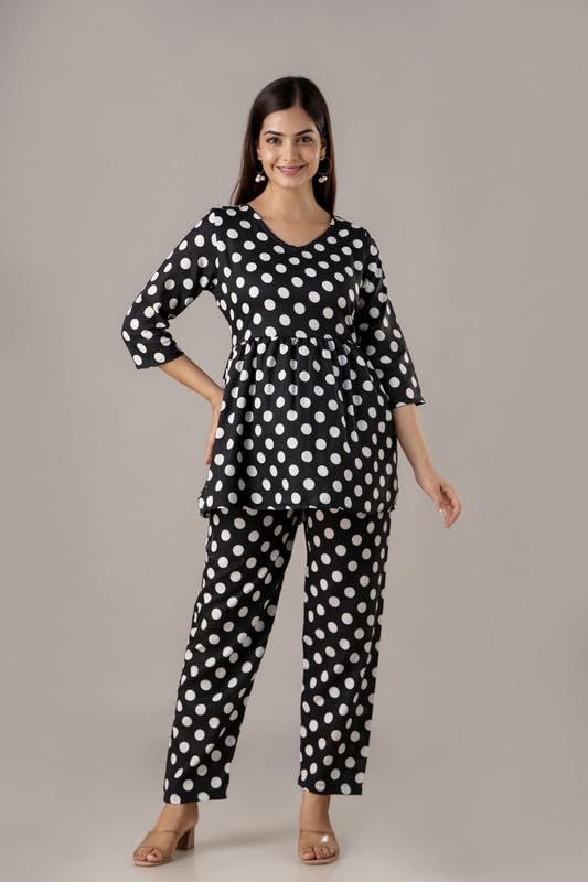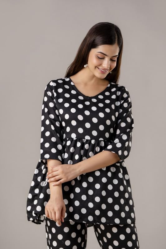 I absolutely adore this yellow and white polka dot loungewear set! From the moment I wore it, I felt cheerful and stylish, even just lounging at home. The fabric is lightweight and breathable, ideal for the warm Indian climate, and the relaxed fit of the trousers gives me all-day comfort. The gathered empire waistline on the top beautifully flatters my figure, making me feel elegant yet casual at the same time. I’ve worn the top with jeans and received so many compliments, which proves its versatility. This set strikes the perfect balance between fashion and comfort, making it an essential part of my wardrobe. Whether I’m running errands or enjoying a quiet evening indoors, this outfit keeps me looking fresh and feeling cozy. Highly recommended for anyone wanting to add a pop of sunshine and retro charm to their everyday wear!