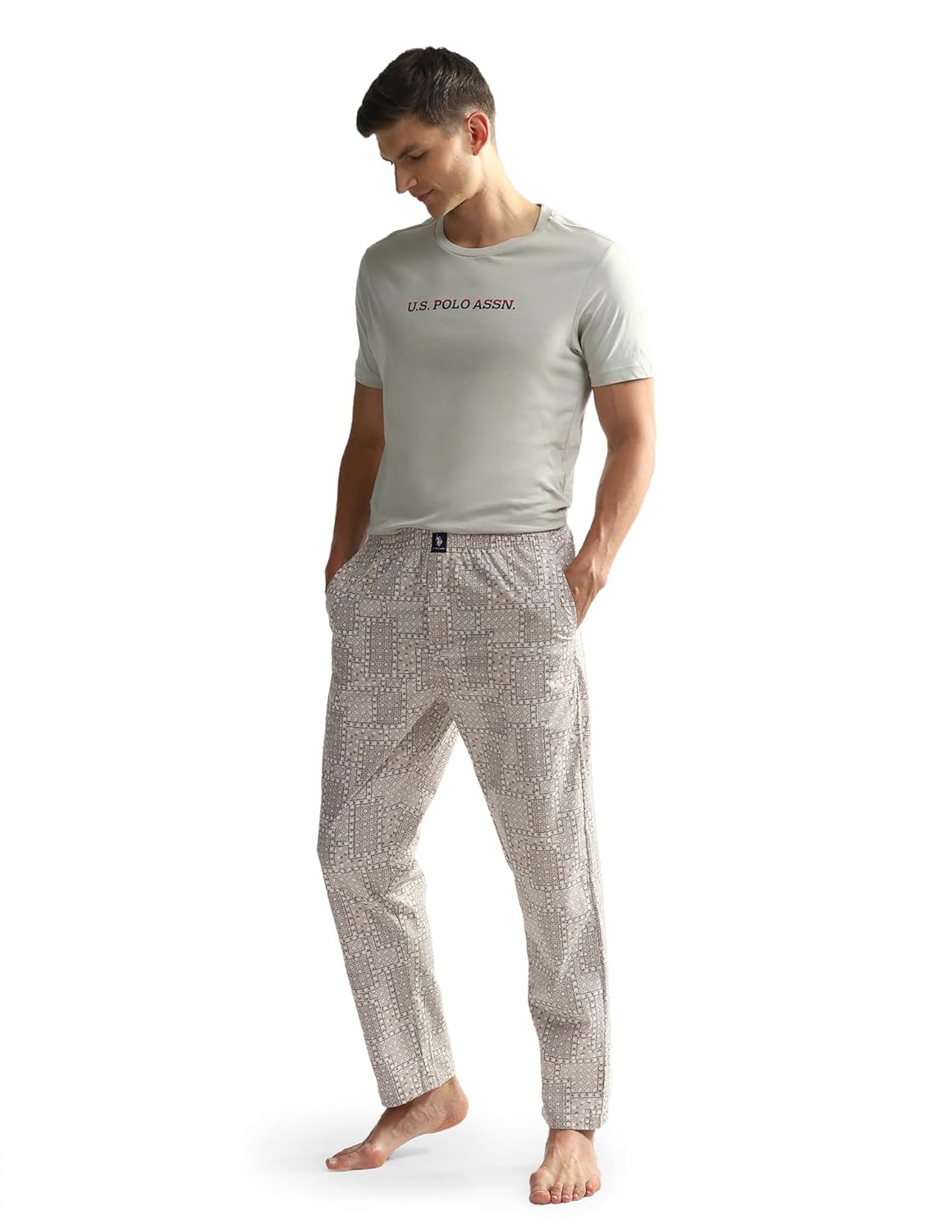 Bring a sophisticated look to your loungewear with these comfortable track pants featuring dual pockets and an all-over pattern.
