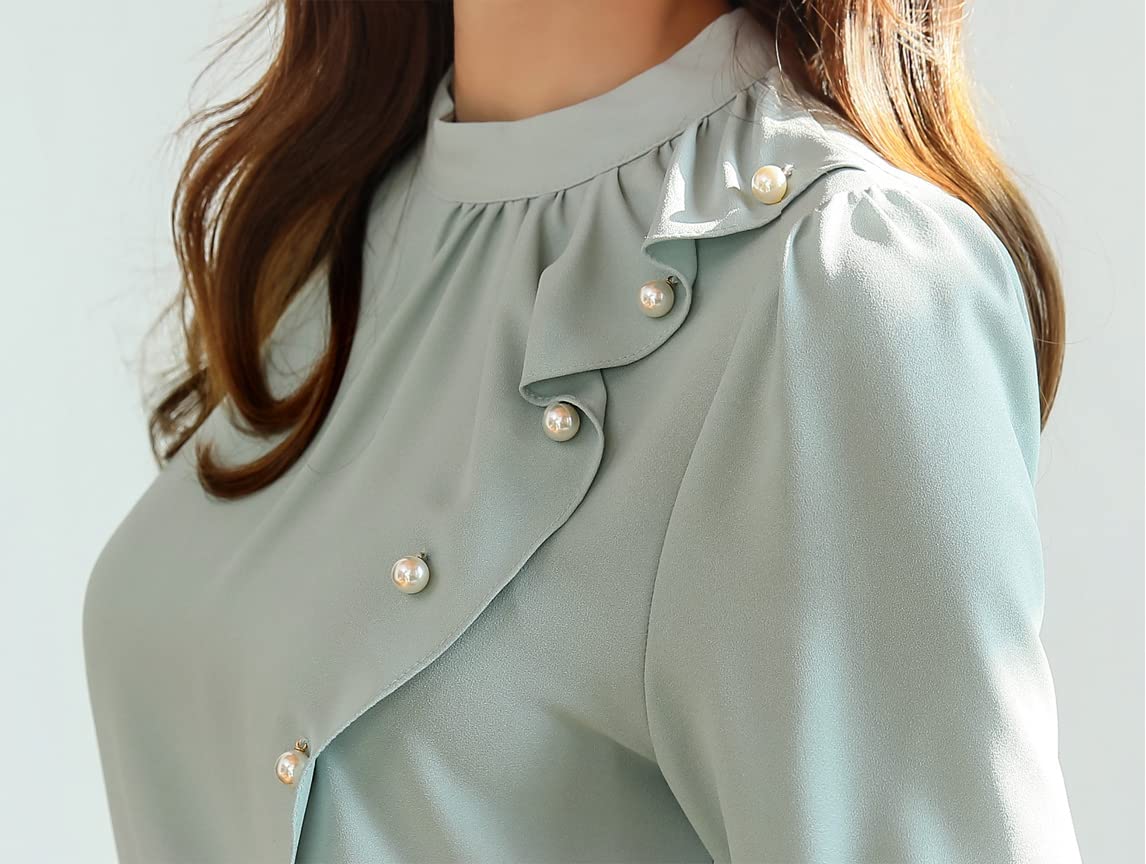 Women’s Modern Fit Solid Polyester Top | Long Sleeve Mandarin Neck Pullover Blouse