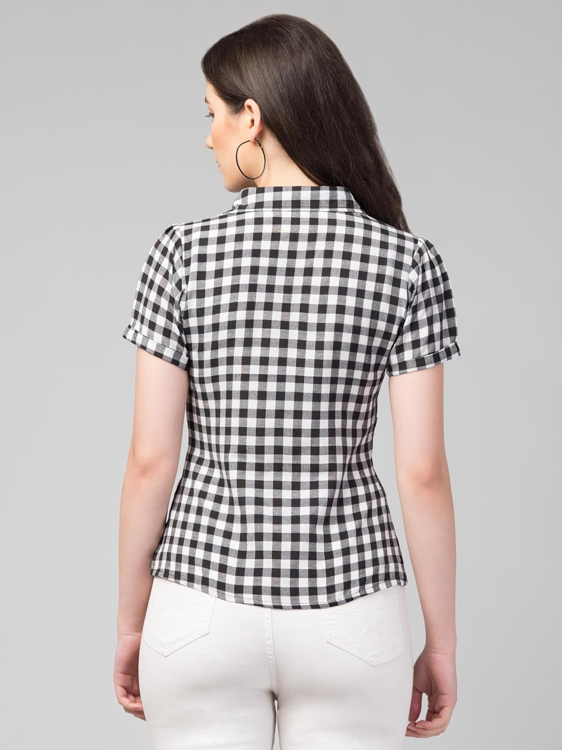 This formal shirt western wear top for women is a versatile and sophisticated piece that can be worn for office or daytime events. It features a collared neckline, button closure, puffed half sleeves, and a mid-waist belt for a flattering peplum silhouette. Made from lightweight cotton handloom fabric, it offers all-day comfort during summer seasons. Available in various prints, checks, and stripes, this ensemble caters to different style preferences and is inclusive of plus sizes up to 3XL. Its attention to detail and timeless charm promise confidence and poise with every wear.